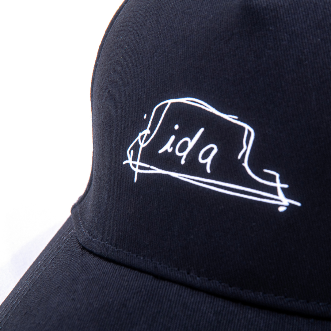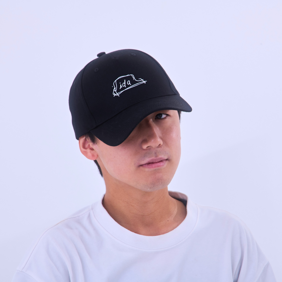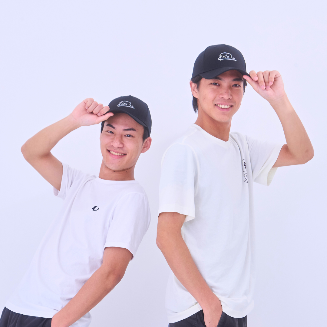 コバが今回のために考えた、もう二度と同じロゴは書けない「いだちゃんねるロゴ」をプリントしたオリジナルキャップ。撮影時に野村が「僕も撮ってください!」と言ってきたのでその画像も載せておきます。